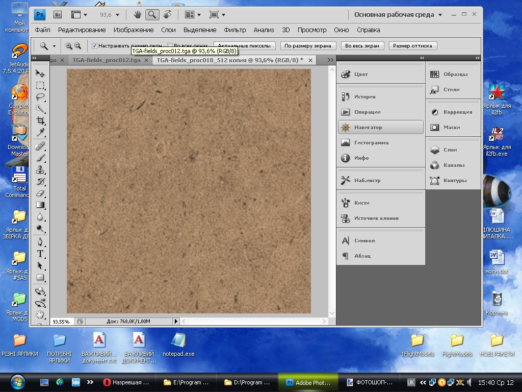 У меня фотошоп-4 старенький ещё, шёл как бесплатная программа в диске с виндовзом(2009 года) что покупал на книжном базаре. И в настройки его я не лезу, потому как слабы для этого знания, но нужные операции для перекраски филдов и коррекции скинов(вставить нужные хорошо прорысованные детали колёс, патрубков и т.д) немного научился делать. Получалось визуально перекрашивать тга так что с высоты 700-1000 метров вроде как зелёный ковёр из травы на полях и горках.
