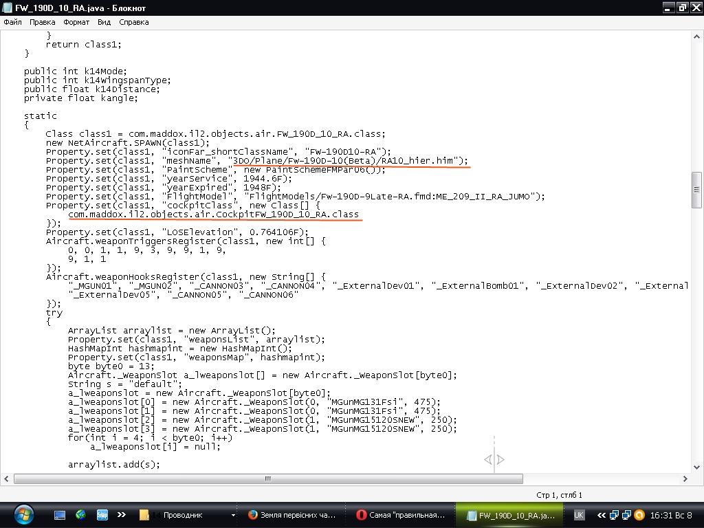 -------------------------------------------- Пока попробуйте поставить этот вариант: - http://rghost.ru/6gFMZg7b4 -., если будут глюки с кабиной - можно выкинуть папку кокпит из 3До. Там планер модифицырован только через хиер-хим без буквенно-цыфровых приставок., я только проверил - всё летает даже с модным куском кода из кокпита поздней Доры из классов HSFX., все джава-файлы закомпилированы в классы в среде com_HSFX\maddox\il2\objects\air. Если полетит - то файлы планера поздней Доры уже не нужны будут. ================================ Обновление Та-152Н-2 - чуть дописано пушечное вооружение и в архив вложена облегченная фм., уменьшен вес топлива до 410кг., метанола до 90кг., стартовый вес - 3870(было 3935), убраны баки и насосы к ним(типа)., максимальный вес самолёта 4700 кг., учтён вес пилота и боезапаса. ФМ из предыдущего варианта мода совместима с этой модификацией., там веса прописаны согласно ТТХ - 3935кг. и 5220кг. Последний раз редактировалось Vasya; 11.03.2015 в 05:28. Причина: дописка текста |
