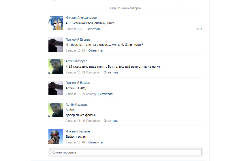 Недавно , я слепил опрос , в одной из групп по ИЛу в контакте.