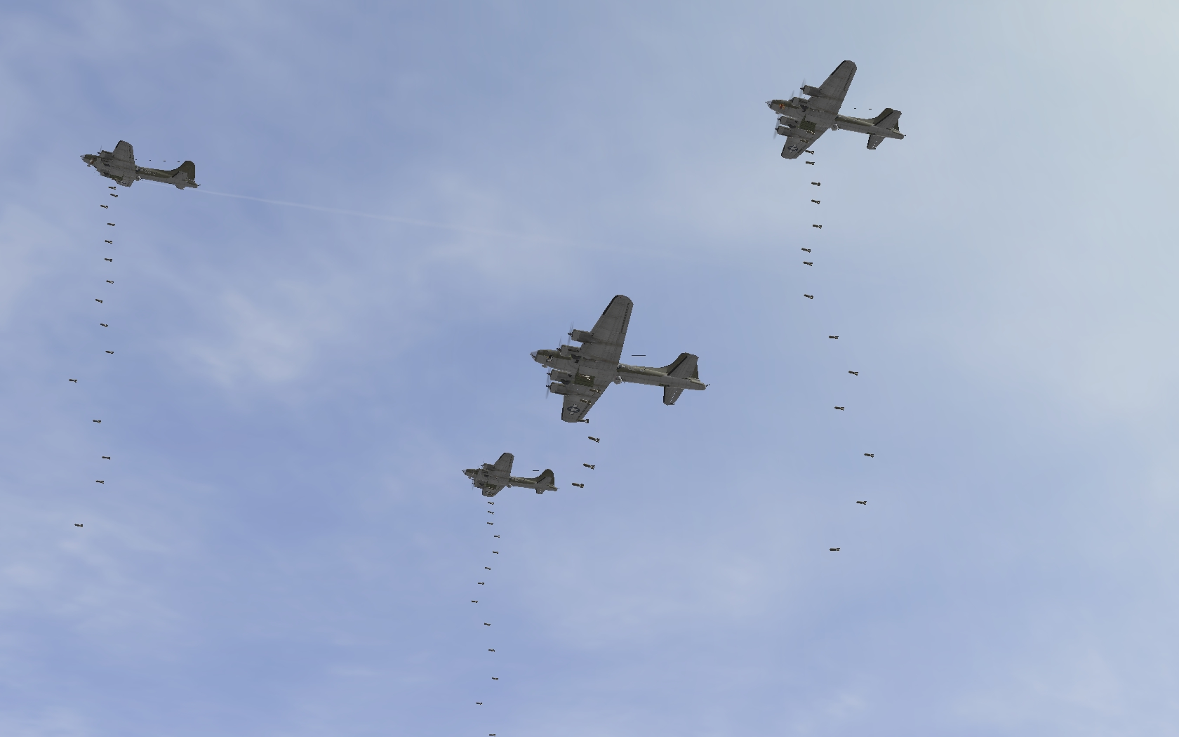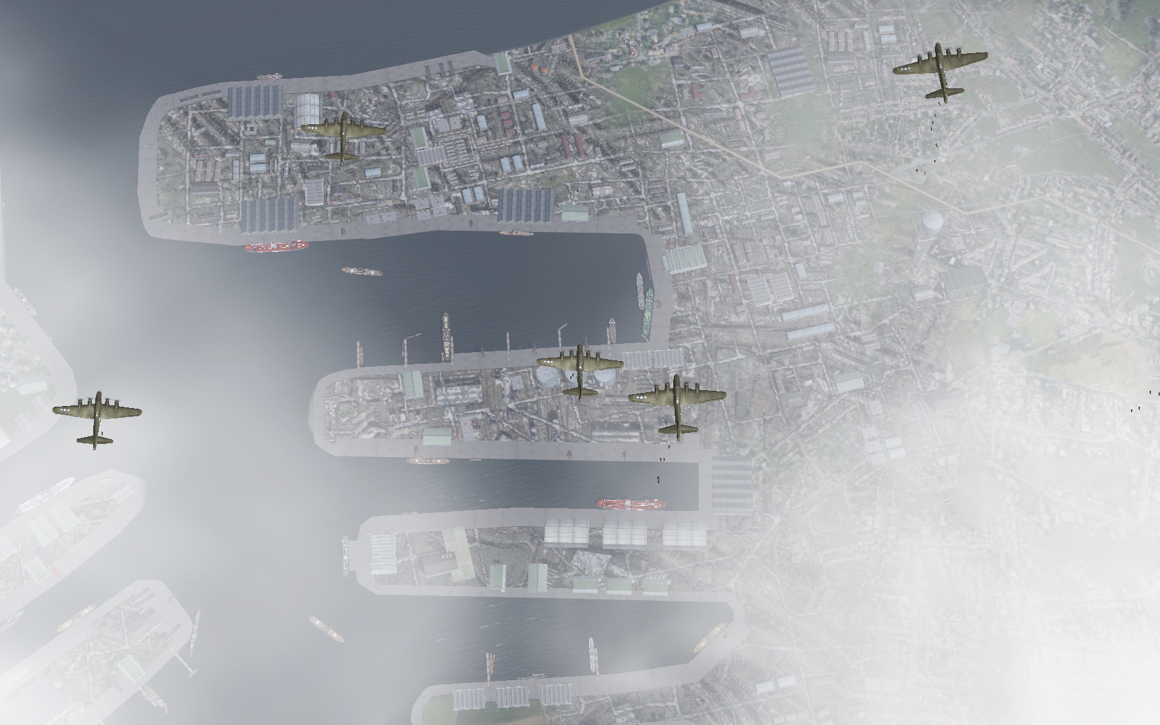 В реальности, системы "Oboe" и "H2S" начали использоваться с декабря 1942, и внедрялись на самолеты Бомбардировочного командования довольно медленно, по мере выпуска их силами британской народной промышленности)) В декабре 1942 первые системы "Oboe" устанавливались только на несколько Москито из знаменитой 8-й группы "Следопытов", а точнее - из 109-й эскадрильи. Следопыты собственно действовали с июня 42, но начальный период их деятельности был прост, никакой особенной спецтехники, просто наиболее опытные экипажи сбрасывали осветительные бомбы над целью, а основная ударная группа уже бомбила по подсветке. То есть даже маркеров еще не было, они появились только к осени. Но уже в декабре 1942 была налажена довольно продвинутая трехступенчатая система бомбометания: 1 - Звено Москито из 109-й эскадрильи при помощи систем "Oboe" и "H2S" высокоточно сбрасывает на цель несколько маркеров. 2 - Одна или две эскадрильи следопытов используют маркеры 109-й эскадрильи для прицеливания, и уже маркируют цель по серьезному, действительно большим количеством маркеров. 3 - Основная ударная группа бомбардировщиков (а осенью-зимой 1942 установилось среднее количество бомбардировщиков для налета примерно в 200-400 самолетов) атакует цель, используя для прицеливания маркировку основной группы следопытов. Но если кому-то покажется что это сложная система, то нифига она не сложная. Так как в 1943 она будет усложнена, чтобы еще повысить точность бомбометания. Но об этом потом. Да, и почему об этом пишу, все это я собираюсь смоделить в кампании. Правда, пока генератор еще не имеет всех возможностей, чтобы воссоздать работу следопытов, да еще в связке с "Oboe" и "H2S" и с основной ударной группой. Но я надеюсь, что хотя бы в упрощенном виде данную систему мы запилим