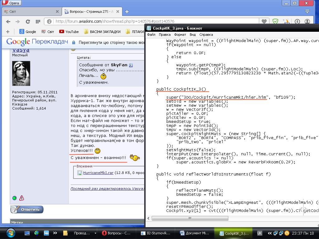 Если мат-файл не поможет - то это уже значит проблемма вашей сборки модов. Возможно есть какой то мод с перекрашенными текстурами для кабин Хуриков или что то в этом роде(типа очень древний мод с хиер-химом такой же давности)., вот и Ил не может найти такую текстуру, ведь это даже не меш, а текстура. Модный Ил ведь читает сначала мат-файлы и текстуры из папки модов - и, если, там будет неправильная(не в том формате) текстура, то и будет краш или глюк того или иного объекта. Так думаю. Успехов!!! ![]() С уважением - взаимно!!!