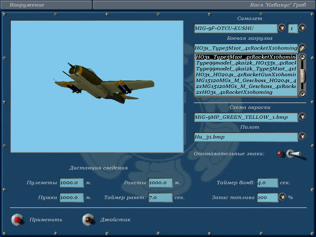 Ниже в архиве копии классов этого самолёта - проверял на патче 4.10.1. возможно что будут работать и на патчах выше. Два класса зашиты с кабиной от Ме-109Г-10(требуеться установка Ультимат-пака-3(4)). Конечно - новая кабина для Ме-209 очень наворочена, но мне нравиться и с кабиной уже привычного Мессера Густава-10. ------------------------------------------------- АЙР-ИНИ: Me-209-IIA air.ME_209_IIA 2 NOINFO g01 SUMMER Me-209-II-DB-603H air.ME_209_II_DB_603H 2 NOINFO g01 SUMMER Me-209-II-JUMO-213EB air.ME_209_II_JUMO_213EB 2 NOINFO g01 SUMMER Me-209-II-DB-603H-G-10 air.ME_209_II_DB_603H_G_10 2 NOINFO g01 SUMMER Me-209-II-JUMO-213EB-G-10 air.ME_209_II_JUMO_213EB_G_10 2 NOINFO g01 SUMMER ----------------------------------- Всем приятных полётов! |