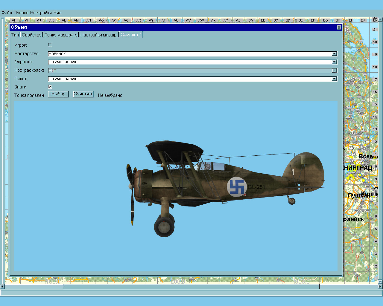 Достаточно просто поставить самолёт из раздела "Стационарные самолёты" и задать ему национальную принадлежность. В настройках карты "дата" можно менять год. В 4.13 в этом плане ничего не изменилось. Самолёт на полосу можно поставить (или не на полосу) только из раздела "Стационарные самолёты". Раздел просто "Самолёты" , это для подвижных самолётов и установки маршрута движения. Им можно задать взлёт с базы. Тогда они появятся в миссии уже прямо на полосе. Ещё можно их привязать к стационарному самолёту , и тогда игрок появится при старте миссии в стационарном самолёте , к которому было указано в полном редакторе. |