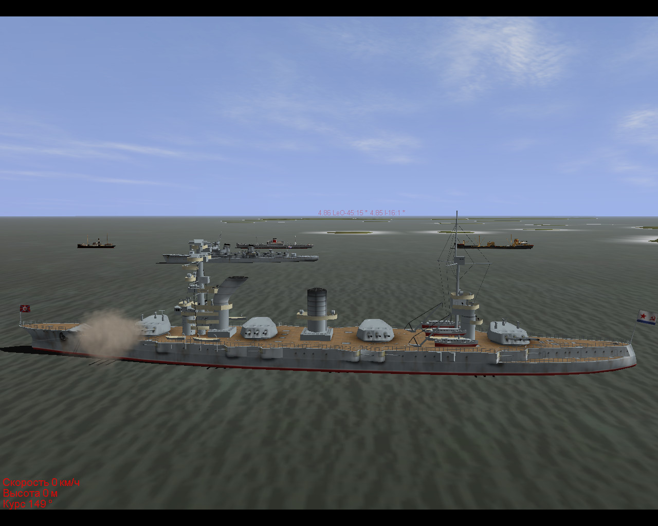 Продолжаю учить матчасть. Катастрофически не хватает времени, работа по Светланам идет крайне медленно. Изучая ships.ini в качестве опыта заставил Марата использовать в бортовом залпе все башни ГК. Пока моделька выглядит так, но с целью экономии полигонов будет частично перепилена. Всем мира...
