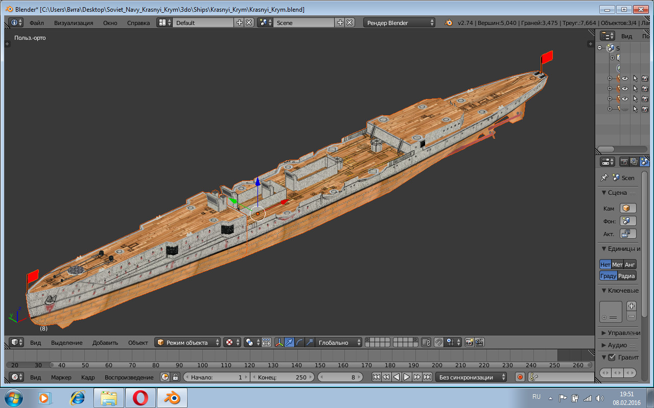 Как и ожидалось работу заклинило на этапе экспорта. Кораблик создавался на базе Blender 2.74. В теории предполагалось конвертить модель в obj файл, переносить в Blender 2.49 и с помощью плагина переносить в Ил. Суровая реальность мгновенно разрушила все планы