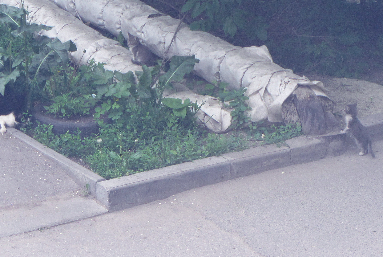 Там ещё прикол, что маленькие котятки за всей этой сценой наблюдали, а потом в рассыпную ![]() Перепащивай конечно. Вон, один на трубе, справа ещё подходят ![]()