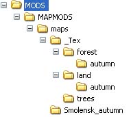 Вернемся в папку Smolensk_autumn и откроем блокнотом load.ini. Этот файл - описание карты, т.е. указывает какие текстуры в ней применяются. Смотрим секцию Wood