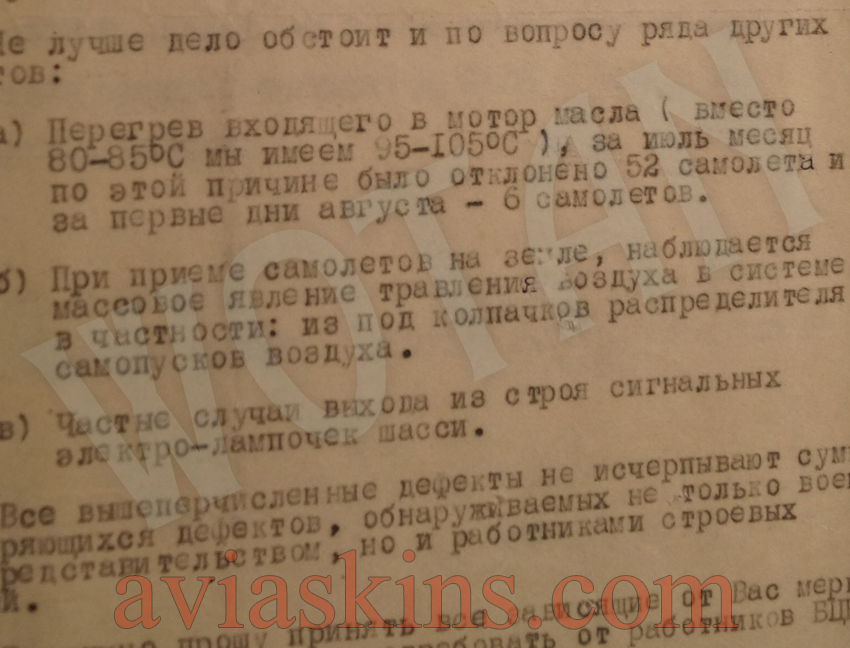 То есть, это то что выявлялось непосредственно на приемке, писали люди которые облетывали практически 100% выпущенных самолетов. Так что это ни какая то локальная партия, а разговор за абсолютно весь выпускаемый продукт... Естественно после того как машины дорабатывались их принимали заново. Тем не менее мотор так и не довели до нормальной кондиции, вплоть до окончания выпуска. |
