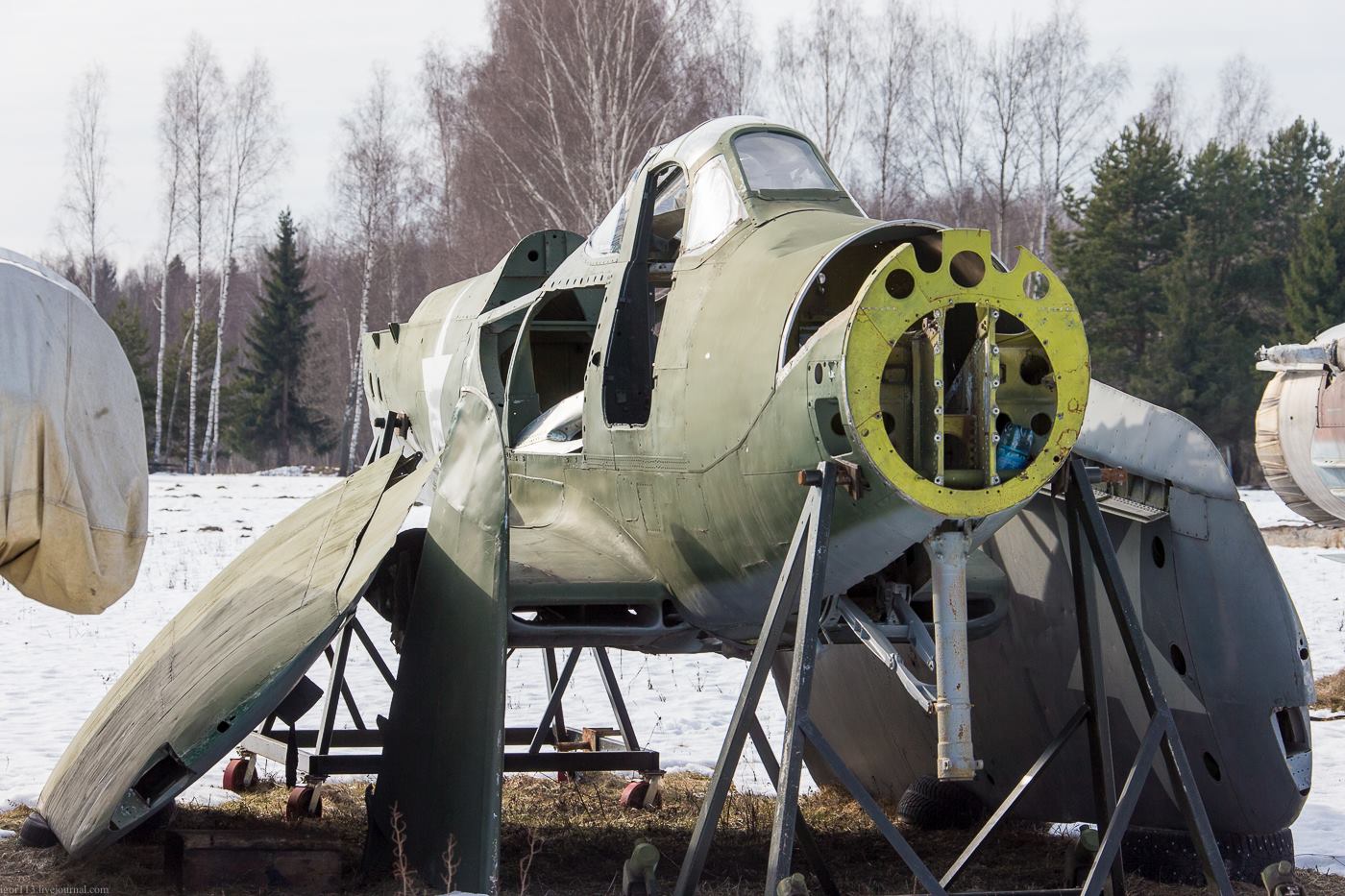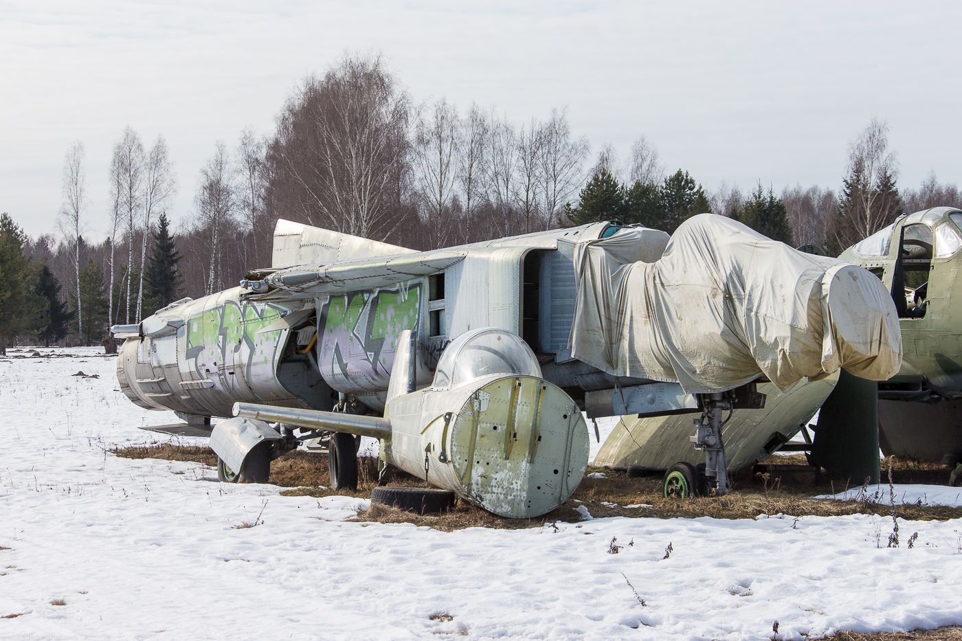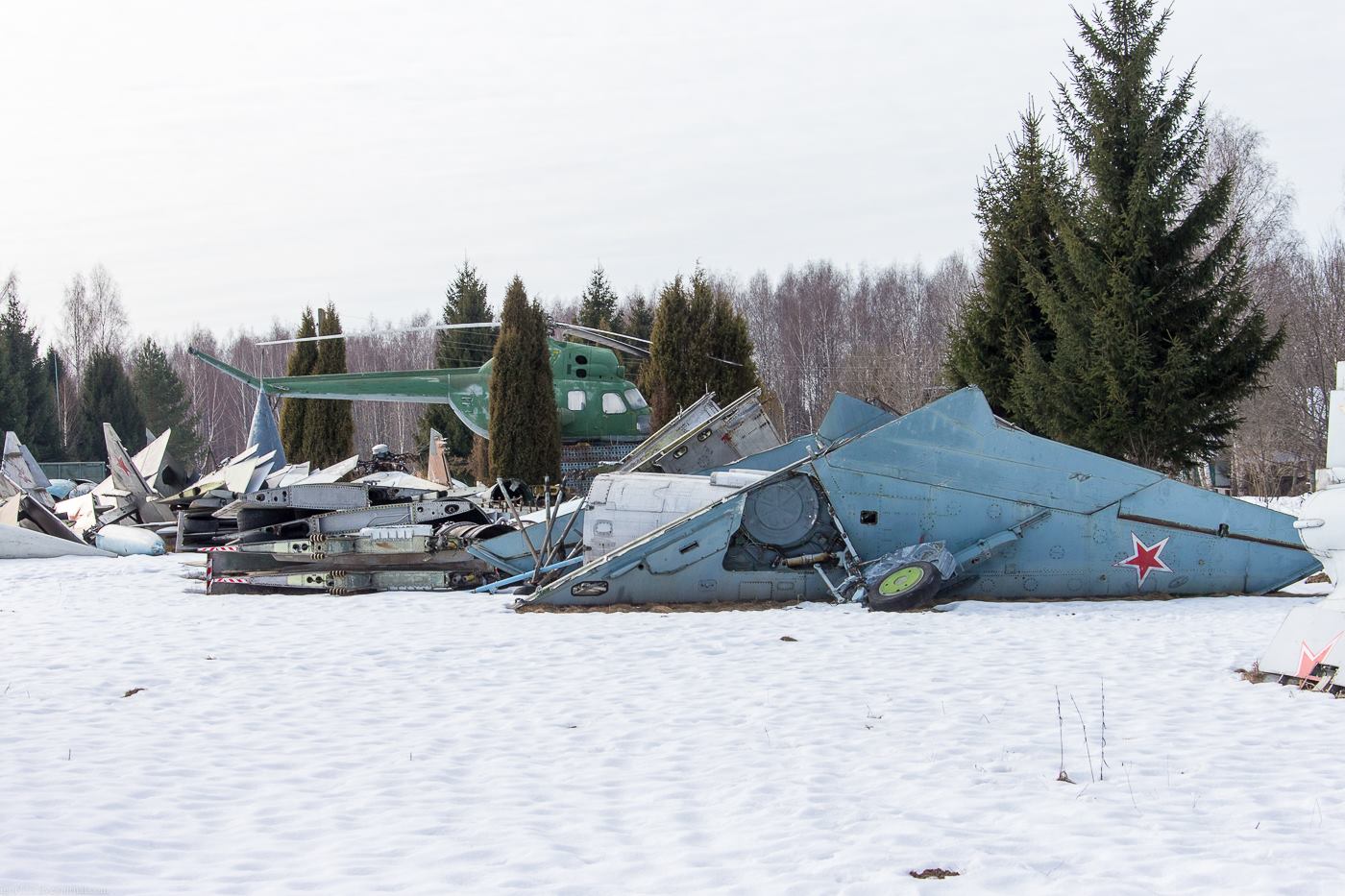 Это не "кладбище". Это будущий авиационный музей в Медыни (съемка 1 марта 2014 г. ).