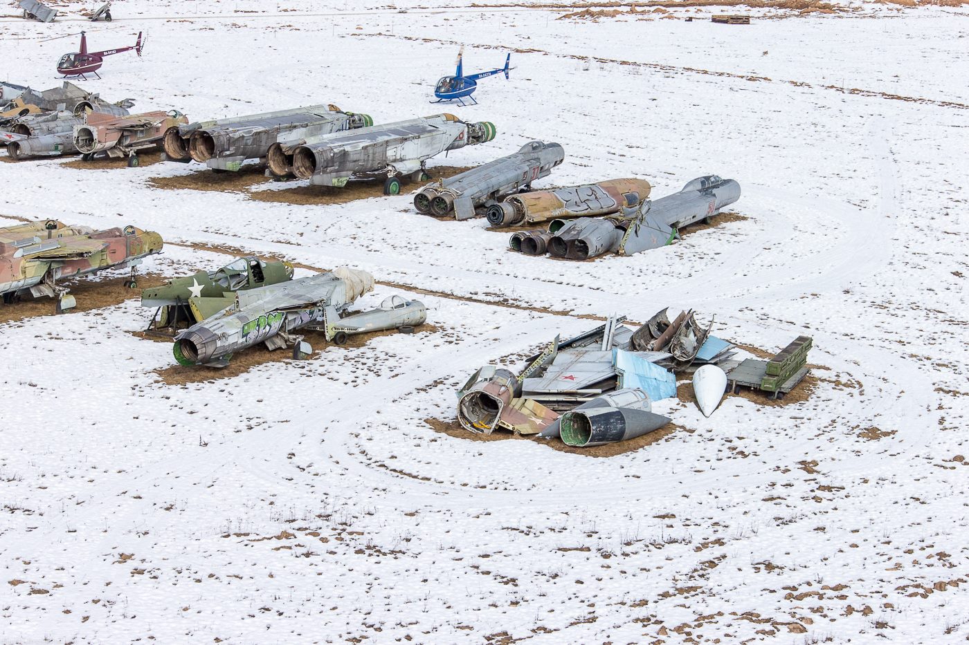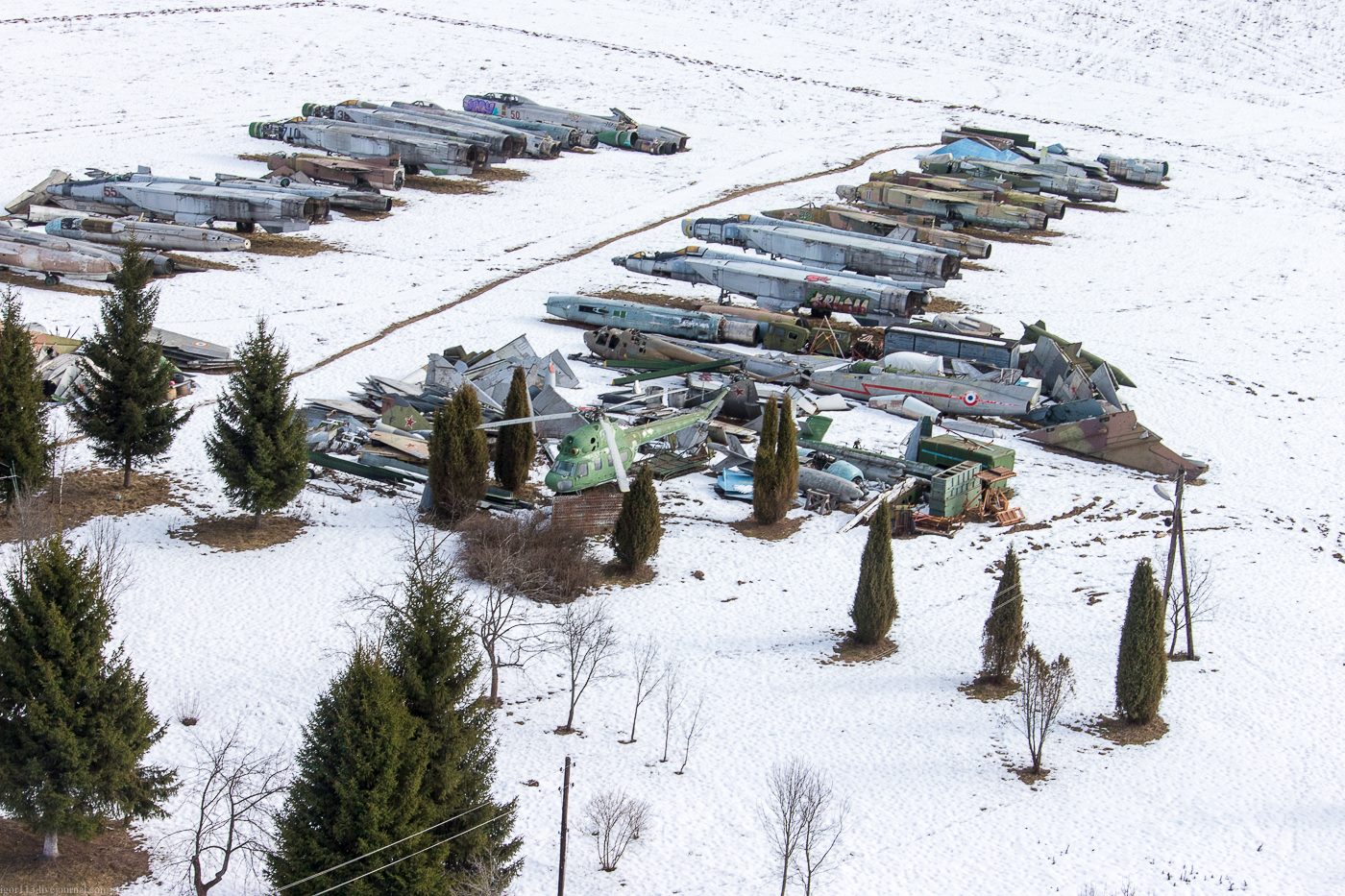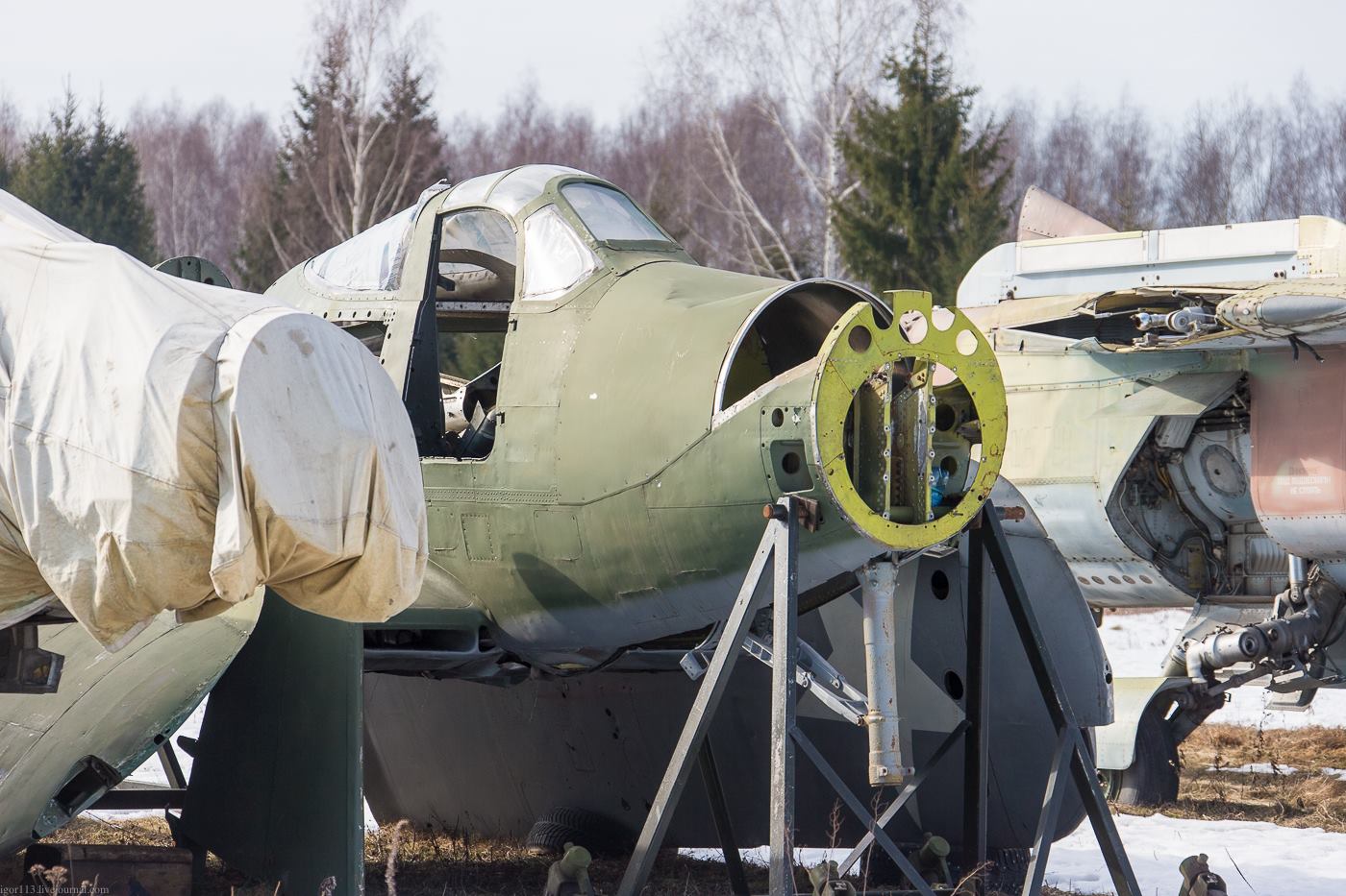 Это не "кладбище". Это будущий авиационный музей в Медыни (съемка 1 марта 2014 г. ).
