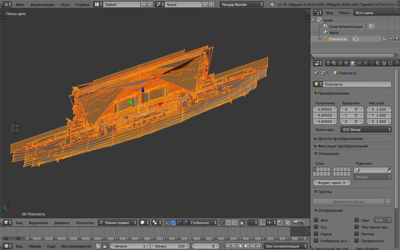 Возможно проблема освещения/затенения кроется не в Блендере, хотя безусловно и там вопросы присутствуют. Вот немного изменил параметры материалов для Эльпидифора. Правда теперь корабль как бы не освещен. Интересный момент, материал орудий не изменен, соответственно проблема сохранена. Но на мелких деталях баг не так заметен. Продолжаю поиск.