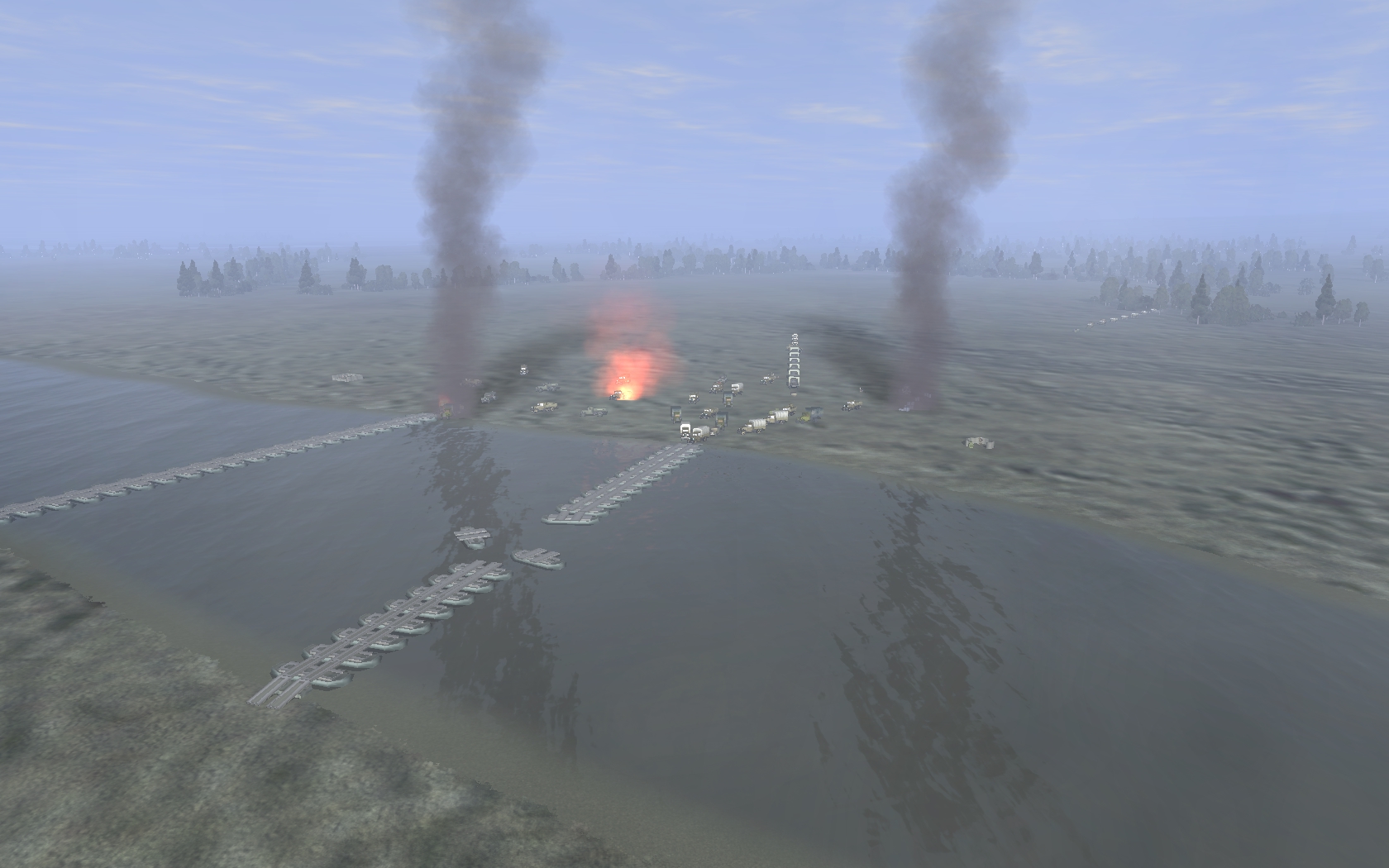 Седьмой миссией должно было сгенериться прикрытие соловьевской переправы, кому интересно, вот:https://ru.wikipedia.org/wiki/%D0%A1...B0%D0%B2%D0%B0 А я ее просто забыл в соответствующем файлике прописать где надо. Теперь поправил, файлик прикрепляется, сунуть его в папку MOD, которая в папке DGen, соглашаясь на замену. Обратите внимание, такого объекта как переправа, в генераторе пока нет, поэтому в брифинге она будет проходить как мост, если что ![]() Кстати мне хочется знать, как моя задумка со сводками совинформбюро в брифингах? Их вообще интересно читать перед миссиями? А вот такая переправа: