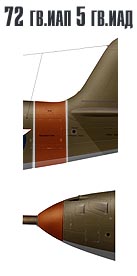 К слову, "по Быкову" машина эта несколько иначе выглядит. "По Быкову" у неё на руле ЭБИ то ли 69-го ГИАП, то ли 23-й ГИАД - горизонтальные белые полосы, навроде как на ДОСААФовских ЯКах.
