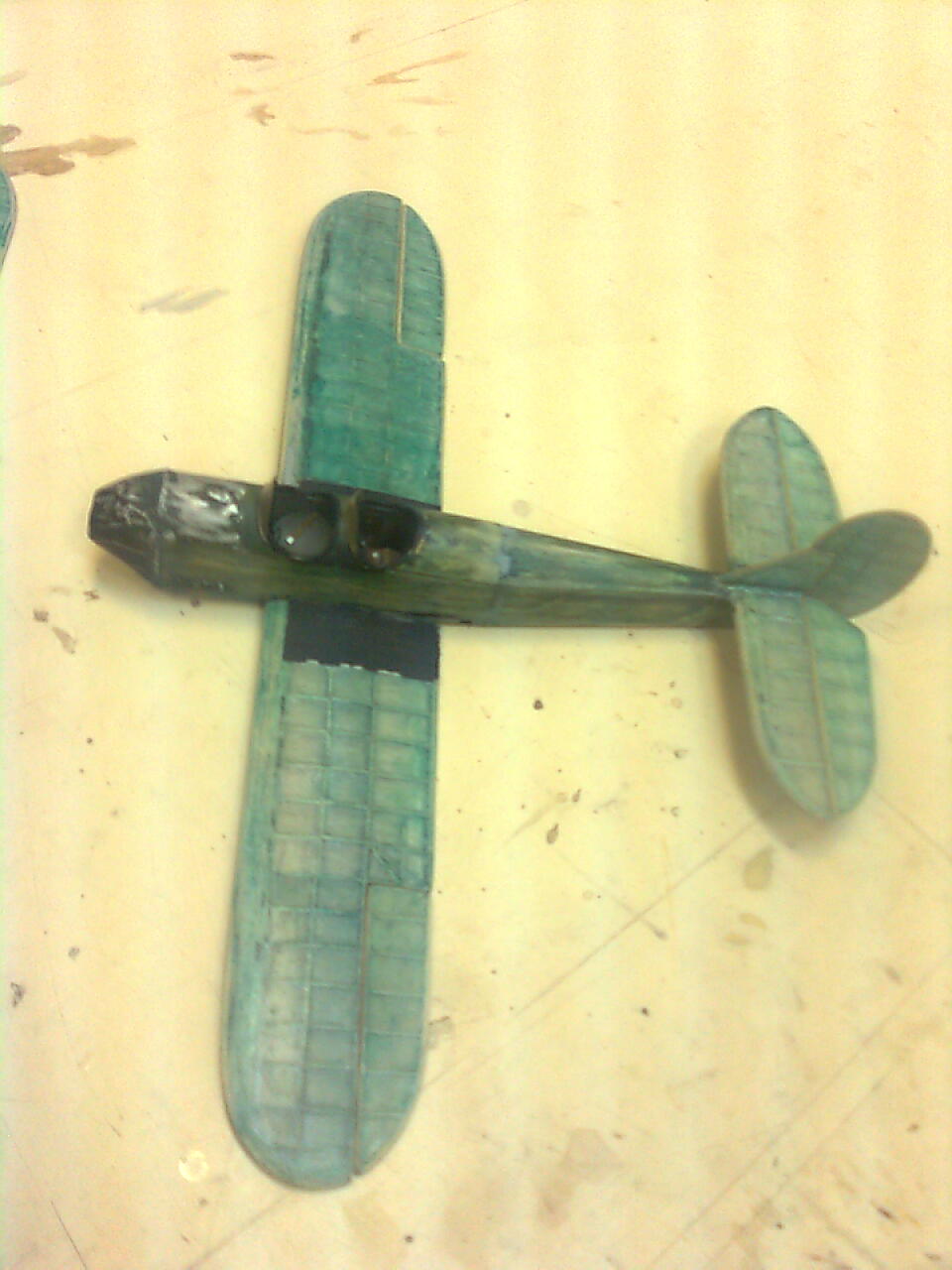 откапал на днях сей пипелац. я его в году 92, али 93 делал. клеен из шпона, каркас весь наборный. 1-35. кстати, зеленый цвет из-за эмалита, а не от миколетной бумаги. где то еще и Чайка такая валялась.