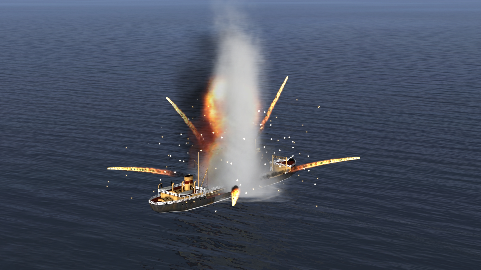P.S. Кстати, взрыв и последующее горение собственно корабля - дефолтные. Изменён только столб воды от торпеды.