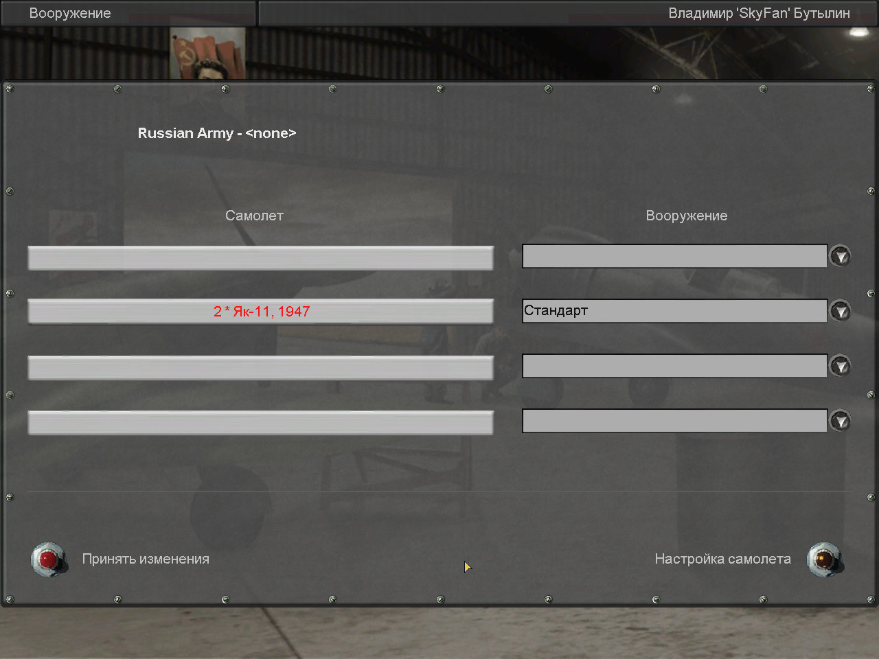 Но самое странное - это то, что если сразу нажать кнопку "вылет", не заходя в меню "Вооружение", миссия грузится и самолет летит, причем не в дефолтном камуфляже, а в том, который указан в миссии (см. скриншот "Вход минуя меню вооружение") ![]() Можно, конечно, в брифе запретить игроку трогать эту кнопку, но может быть, существует какой-то более цивилизованный способ разрешения ситуации? Заранее всем спасибо за любую идею или совет. ![]() P.S. В 4.12.2m + SAS ModAct 5.30 такого не происходит
