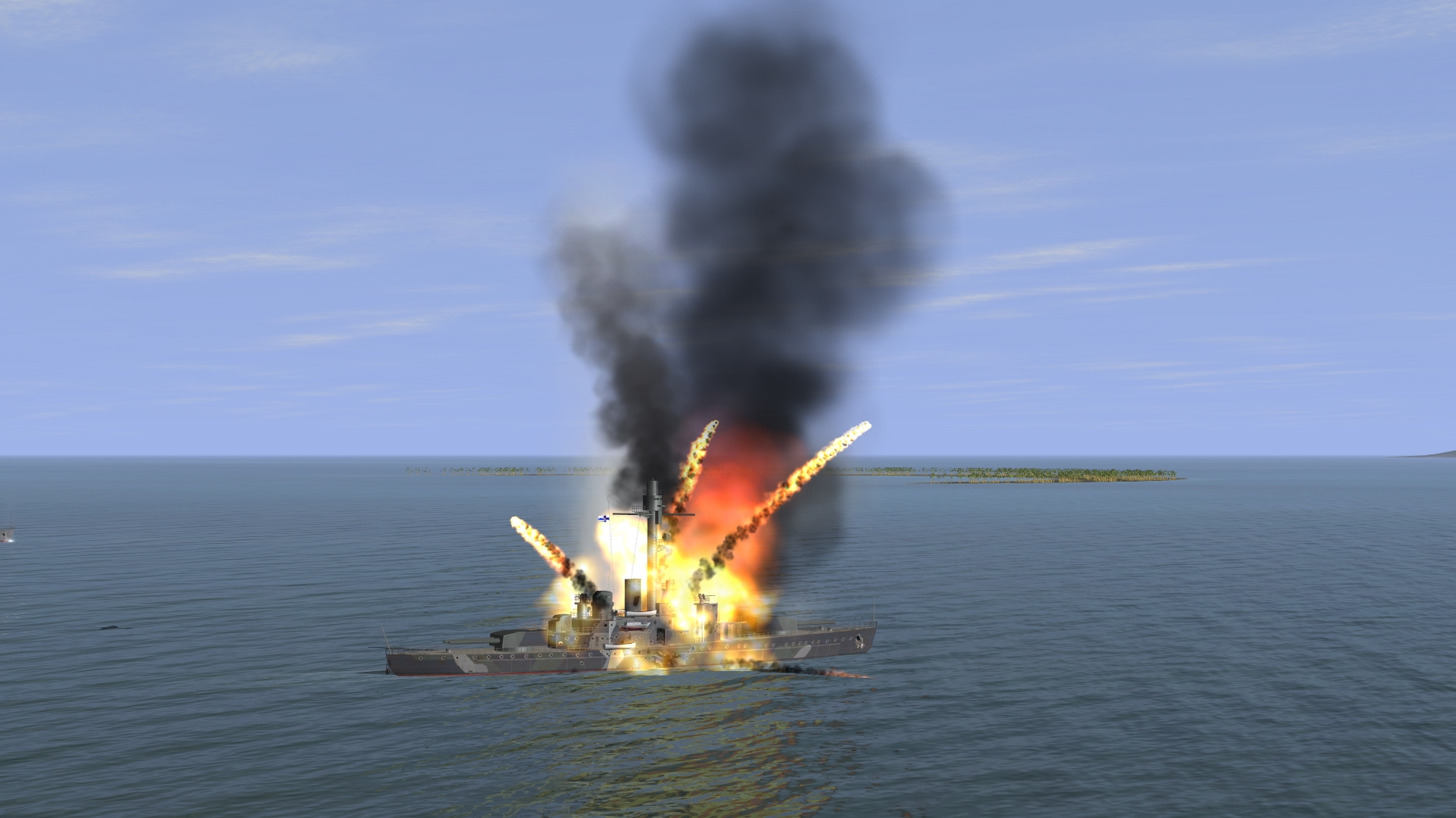 P.S. Кстати, взрыв и последующее горение собственно корабля - дефолтные. Изменён только столб воды от торпеды.