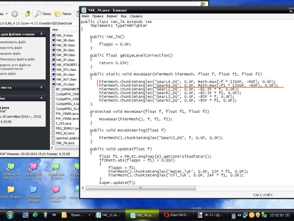 Як-11 по прежнему ссылаеться на Як-7А., в нём же вписаны команды на работу мешей, которых в 3До Як-11 нет. Лог как раз на них и ругаеться - на отсутствие мешей 4-гиар. - http://forum.aviaskins.com/showpost....postcount=6597 -. Может всё же стоит сделать класс Як-11 самостоятельным и опирающимся только на основной класс ЯК!!? Такое предложение. ![]() Извините что встрял из своими копийкамы!