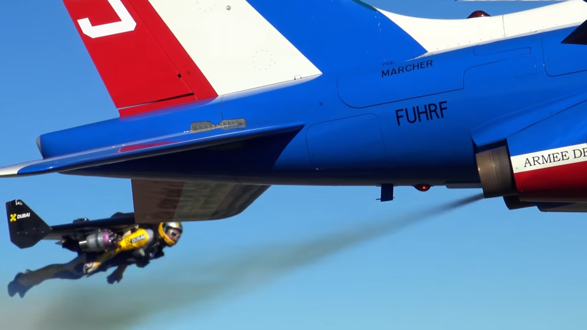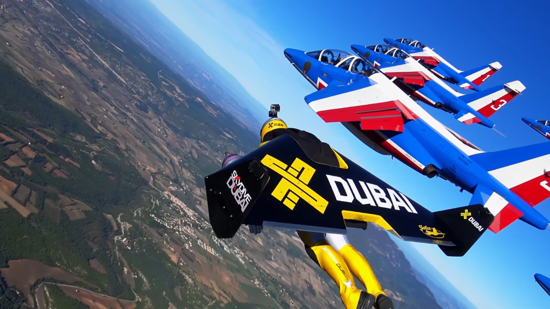 Совместный полёт пилотажников из Патруль де Франс и Джетмэнов |