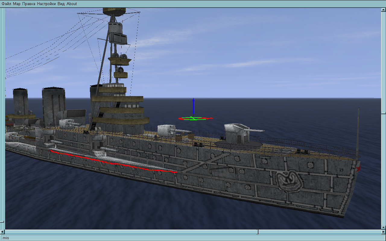 И ещё возникла одна не понятная проблема, неприятная рябь на корпусе и палубах, видимо что-то с текстурами. В общем работа значительно продвинулась, а если удастся разобраться с затенением то вообще будет праздник! Всем мира!