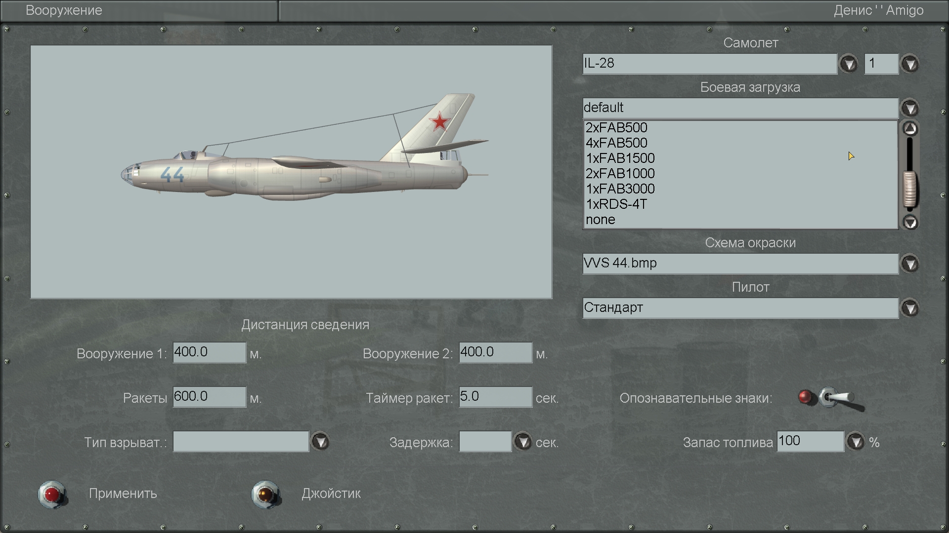 Во-вторых, это только у меня нет ни какого вооружения, кроме "По умолчанию"? В-третьих, самолет нормально полетел, только в C.U.P. и только в Джет эре. В ДГен-пак кто то его устанавливал? У меня он заменил тот ил-28, который там был (менее красивый, зато с ядерной бомбой), вернее их стало два модных, одинаковых с вооружением по умолчанию. |