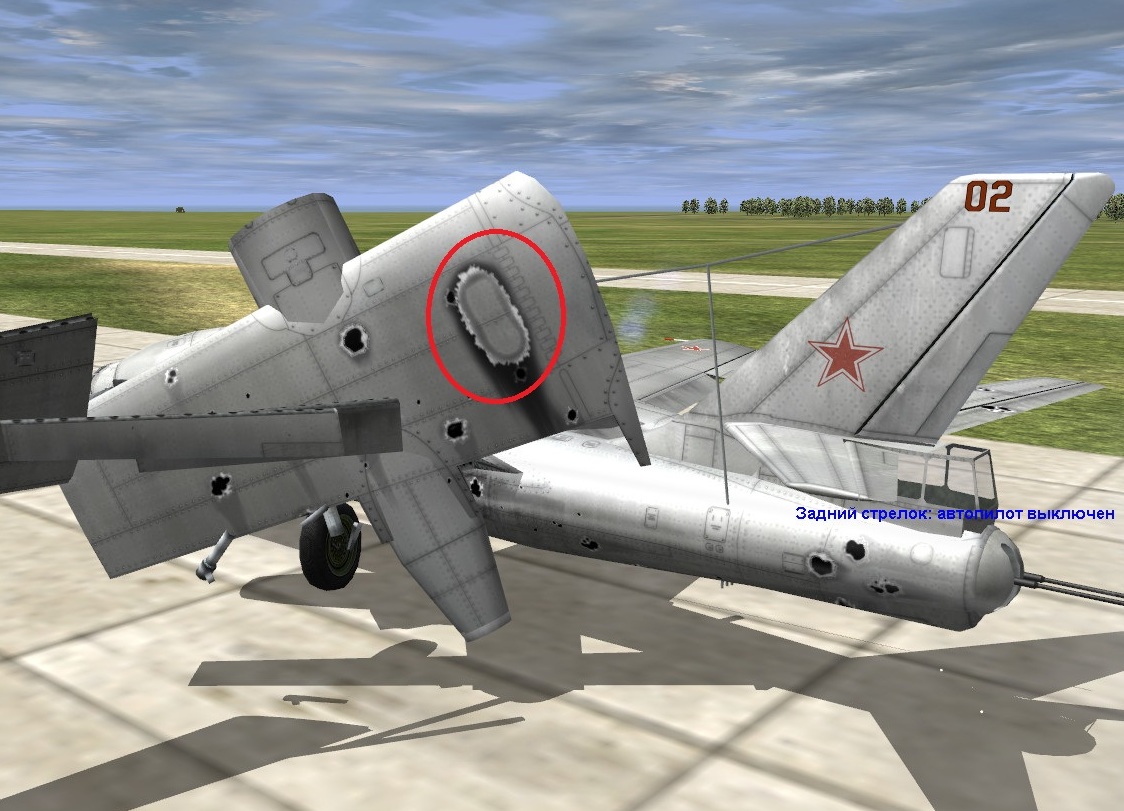 Если Вы внимательно читали мои сообщения в этой ветке, то обратили внимание, что изначально я вообще предполагал на месте крупных пробоин сделать сквозные отверстия. К сожалению, для этого, как оказалось, надо править меши, чего я совершенно не умею. Я изложил свою проблему на полигоне, и предложил исправить это кому-нибудь из форумчан с опытом, однако пока никто не отозвался. Таким образом, отрисованные мной текстуры на месте крупных пробоин - это, по сути, компромисс между тем, чего заслуживает "реалистичный симулятор"(с) и той damage-моделью, которая была у Ил-28 изначально.