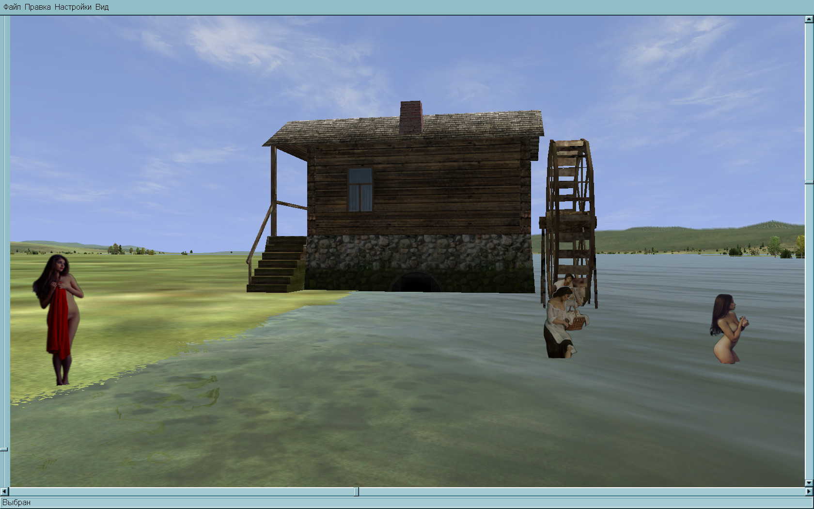 На первой - кружком обведена недостающая ось, стрелкой высота. На картинке 2 и 3 - вся мельница снижена на один метр - колесо находится в воде, как и положено.