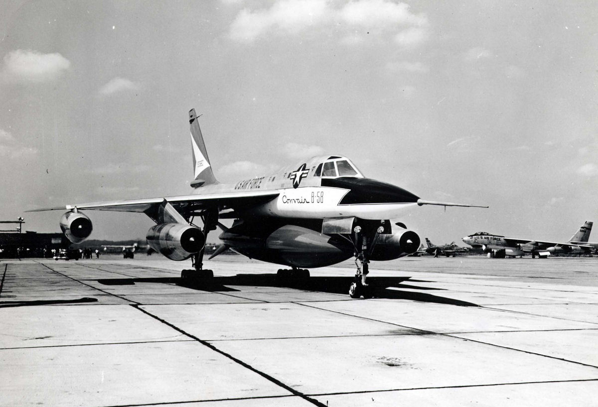 Первый серийный сверхзвуковой бомбардировщик Convair B-58A Hustler.