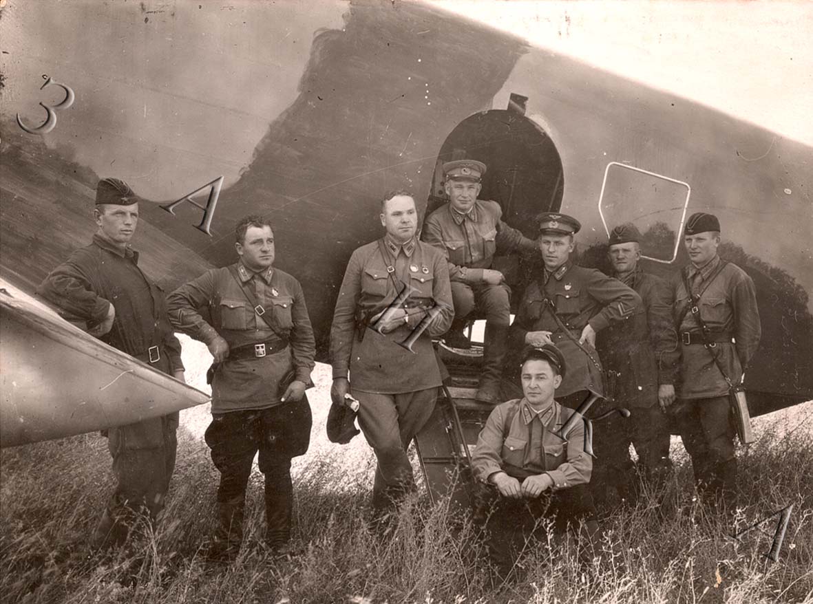 Аэродром Шонгуй, лето 1941-го года. Самолёт-истребитель И-16, бортовой номер 23. На фотографиях командир эскадрильи 145-го истребительного авиационного полка 1-й смешанной авиационной дивизии 14-й Армии капитан Гальченко Леонид Акимович (слева). Командир звена лейтенант Миронов Виктор Петрович (справа)
