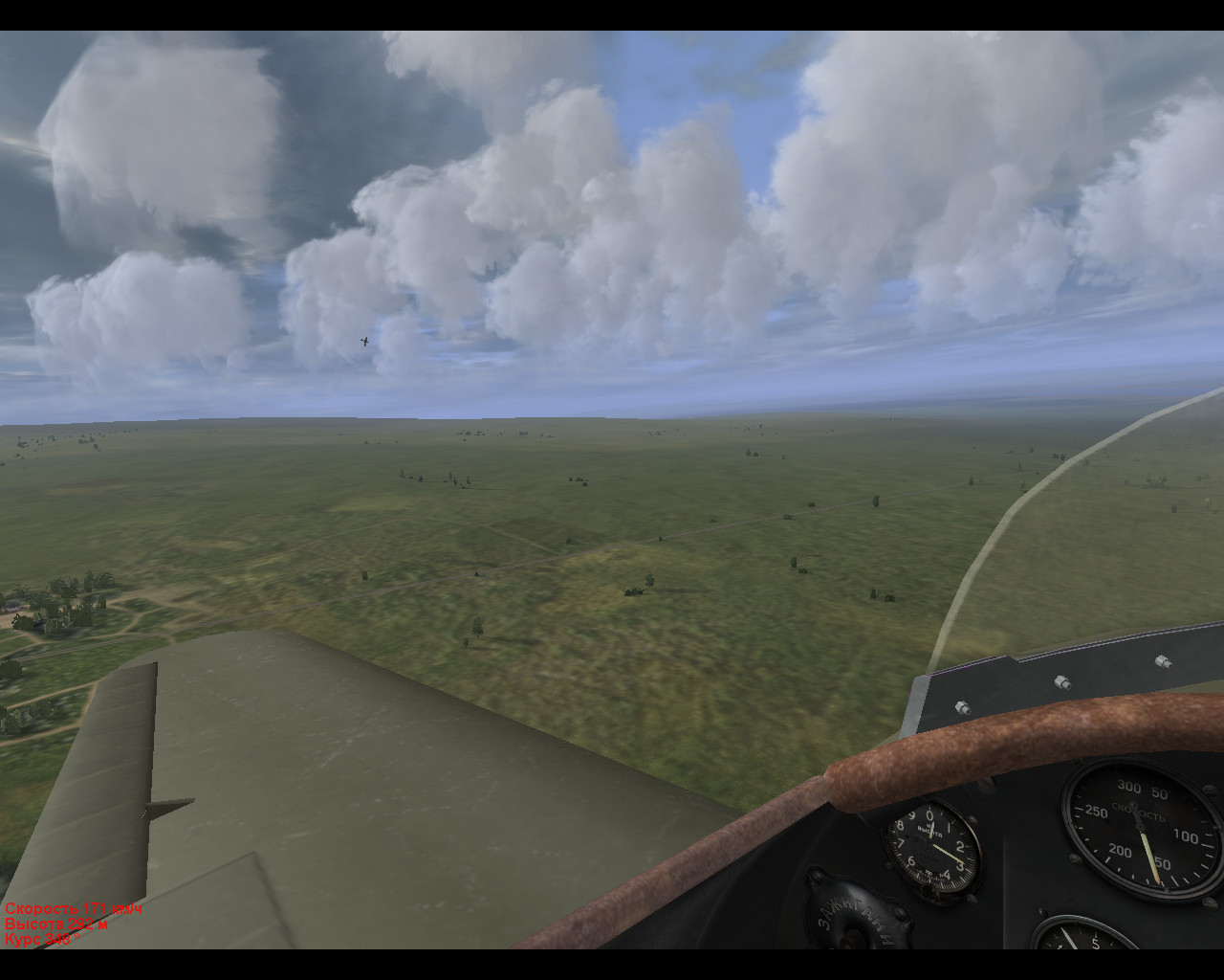 Период: 11 августа 1941 года Время: 9-00 Погода: штиль,облачность на высоте 2000 метров Аэродром Ростов-северный 421 бомбардировочный полк Версия: 4-12.2+ВАТ 3.5+мод Ер-2 Просто полет по кругу. |
