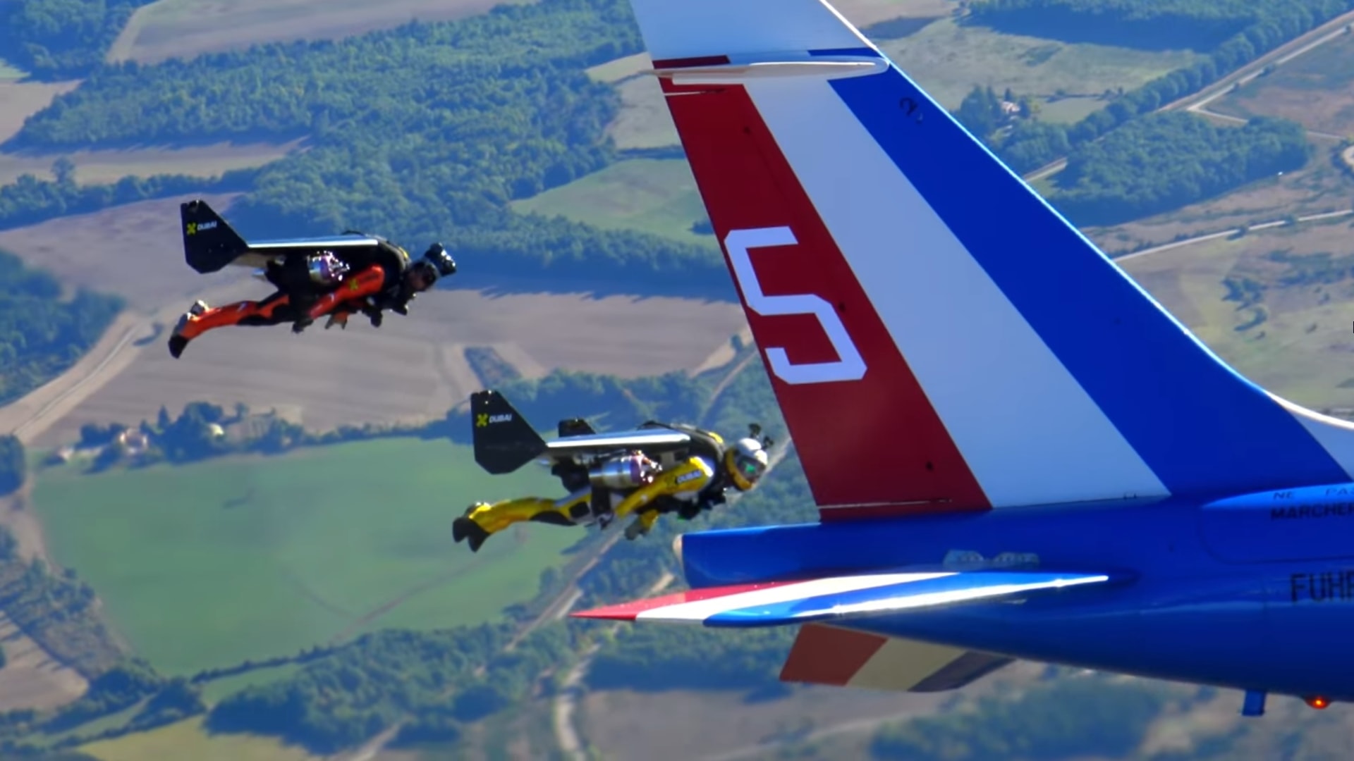 Совместный полёт пилотажников из Патруль де Франс и Джетмэнов |