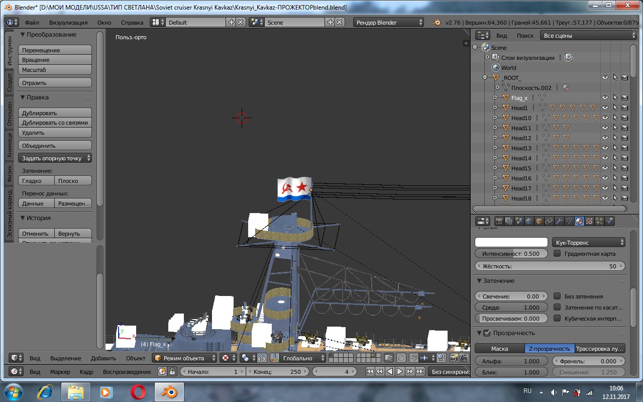 Да, Ваш. Еще сделал флаг не одним плоским полигоном, а из нескольких изогнутых по вертикали, так реалистичнее.