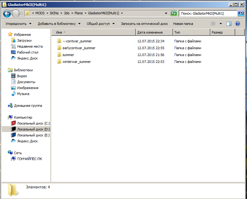 Очень благодарю вас , но нужен Гладиатор-2 (GladiatorMkII(Multi1) Я хочу поменять ему стандартную окраску на исторически верную. Мне надо узнать , по какому адресу лежит окраска "стандарт" предназначенная для выбора "Финляндия" с 1941 года (мой пост http://forum.aviaskins.com/showpost....postcount=5614) Где лежат эти окраски ? По какому пути смотреть ? Вот , я вскрыл ИЛ , по какому пути надо пройти ? Или просто какую структуру папок надо создать для мода ? |