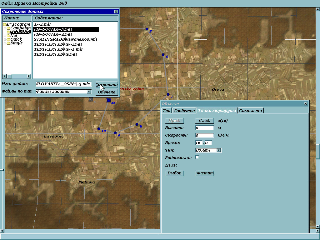Я делал себе много раз миссии и для простого редактора, в том числе., всё делал в сложном редакторе - точки проявления самолётов в миссии нормально ставились хоть на полосу, хоть куда, можно было указать задачу - полёт, атака, взлёт и т.д., потом ставил следующую точку и следующую, весь маршрут полёта, и так для нескольких групп самолётов, всё потом сохранял и миссия готова. Сейчас же в патче 4.13 с Модактом 6.01 точки появления самолётов просто на карте не крепяться, Цтрл не помогает. Что лделать не знаю. Вот такие дела. ------------------------------------------ Только проверил на патче 4.10.1 - никаких модов редакторов там не стоят. Спокойно можно - зажав Цтрл - поставить точки для летающего самолёта, назначив и взлёт и посадку. Скрины прилагаються. Сделать подобное в патче 4.13 не получилось. Последний раз редактировалось Vasya; 13.07.2015 в 14:51. |
