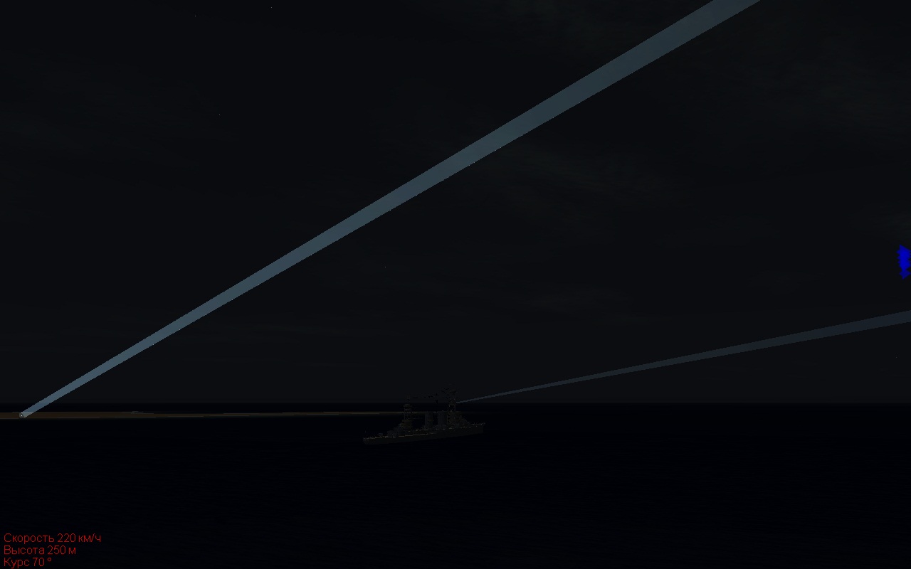 Кроме этого есть проблемы с не знаю как назвать, балллистикой, что ли? Луч прожектора (орудия) бьёт чуть впереди от летящей цели. Как бы берет упреждение. Как решить эту проблему, пока не ясно.