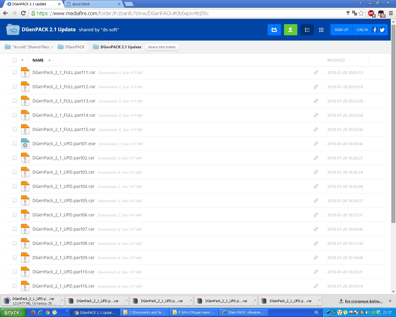 Качаю вариант для обновления поверх 2.01 - с облака №2 (mediafire), т.к. Яндекс в нашизх краях под запретом. Но возникла непонятка: имена частей 11-15 архива не совпадают с именами остальных частей архива (DGenPack_2_1_FULL.part11.rar vs DGenPack_2_1_UPD.part10.rar) В имени частей 1-10, 16-21 фигурирует UPD, а в имени частей 11-15 - FULL. См. картинку в прицепе. Нет ли тут ошибки?
