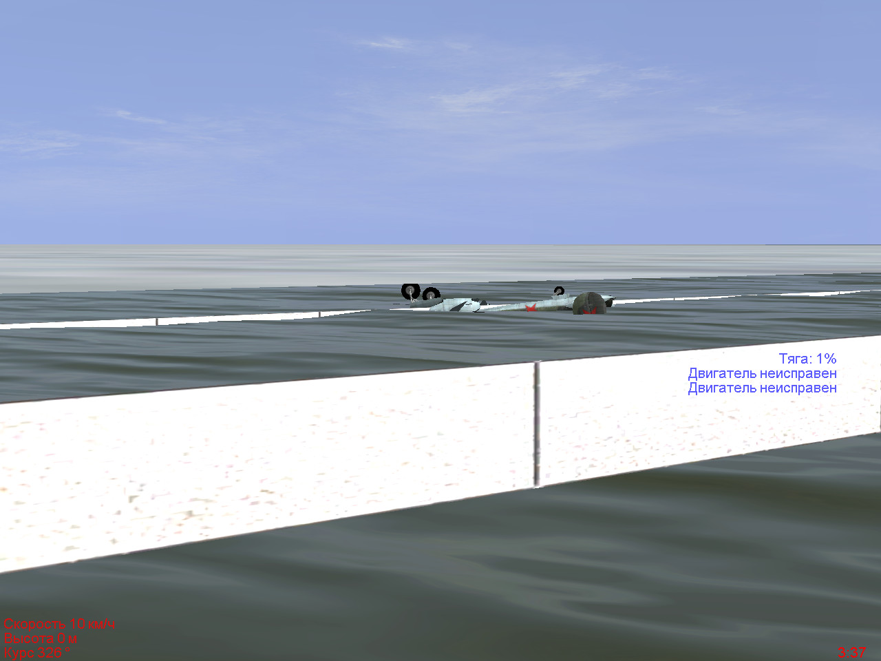 Действительно заработало! Льдина из кабины самолета выглядит великолепно, напоминая уже реальную льдину , кто не в курсе, что она сотворена из квадратной бетонной плиты, тот и не догадается ![]() На льдину успешно приземляются Пе-3бис и ТБ-7 на колесном шасси. Треки и скриншоты в прицепах. Правда, попытка высадить пилота из ТБ-7 и пробежаться по льдине (Ctrl+E) окончилась летально (появилась надпись "Игрок убит" - видна на скриншоте с ТБ-7). Но видимо, это свойство всех игровых авианосцев. Так что, БЖСЭ ![]() Что хотелось бы еще (из серии "Дядя, дайте водички попить, а то так проголодавлся, что переночевать негде" (с) )? 1) При попытке установить на стационарный вариант льдины "ранее приземлывшиеся" стационарные самолеты и палатки из меню "Объекты" они, в отличие от приземлившегося самолета игрока, выглядят "занесенными снегом" (см. скрин). Кстати, штатная тестовая ВПП №1 грешила тем же. Т.е., это не связано с текстурами. Конечно, при оборудовании стационарной льдины можно наклонировать нужных объектов и изменить им высоту в тексте static.ini. Но это не сработает с подвижным вариантом льдины. 2) Край припая не совпадает с уровнем моря (см. скрин с танкером). Из кабины самолета этого не заметно, но при съемке роликов может броситься в глаза. При этом, опускать весь филд на уровень моря не хотелось бы (неправдоподобно), но как правильно поступить не знаю. ![]() 3) Очень просится рельеф для припая, сугробов и торосов. Но тут, видимо, без вмешательства в 3D не обойтись - тоже не знаю, как решить проблему. 4) Просьба к Знатокам выковырять и выложить классы для RwyCon остается в силе: этот плавучий аэродром уже сейчас достоин быть самостоятельным объектом "Ила". Заранее спасибо всем. Greif11, низкий поклон еще раз!