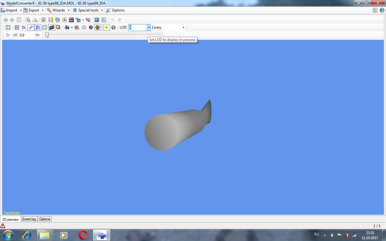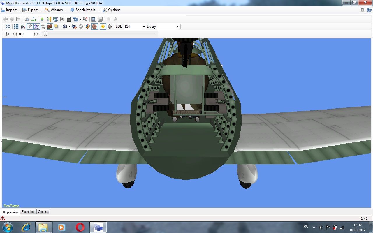 Интересная система лодов, для Ил-а видимо не подойдет. Удалил их всех. Остался нулевой лод весом двадцать одну тысячу треугольников и это с кокпитом. Нет бомбодержателей.