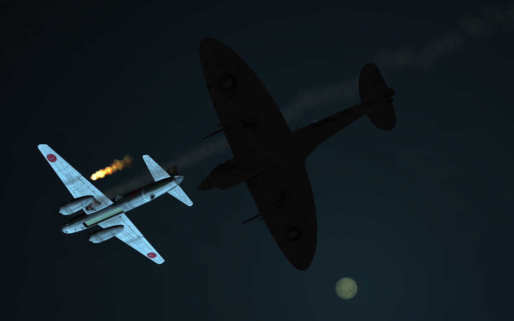 Еще один апдейт по Дарвинским Спитфайрам. Сейчас я прохожу эту кампанию, и, как всегда, никакой тест не сравнится с неспешным прохождением кампании. Судя по первым двум миссиям, получилось норм. В 1943 обычные Спитфайры-пятерки несколько раз вылетали на ночной перехват японских бомберов над Дарвином. Точно не знаю, но скорее всего они находили японцев при помощи прожекторов, зениток и наведения с земли. В кампании это тоже срабатывает: