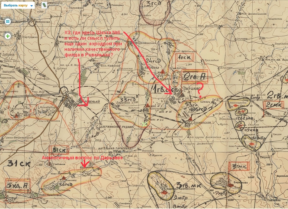 К тому же, опять же ИМХО, не все из описанных в мемуарах аэродромов иммет смысл добавлять на карту. Например, Новозолотовская (она жа Семикаракоровская - см. одноименный скриншот с карты РККА), если не ошибаюсь, находится за восточным срезом игровой карты. Новошахтинск был бы определенно кстати. Аэродромы Шахты №6 и Дарьевка в реале находились под Ровеньками. А в Ровеньках смоделирован вполне достойный и атмосферный аэродром. Смысл тулить рядом клонов? Шмидт - было бы хорошо. Н/п Смелый находится практически рядом с игровой а/б Славяносербск - тоже не вижу смысла городить огород. Вот и получается, что дополнительных аэродромов, усилия по работе над которыми былы бы оправданы, нужно делать всего два. Но на мой взгляд начинать надо с согласования с автором. С уважением.