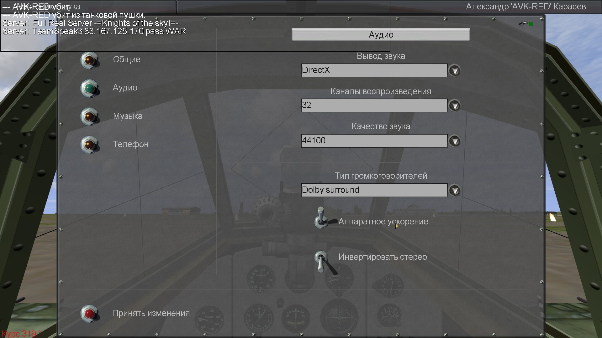 Еще важно, как настроен звук в игре. Я пользуюсь Sound Blaster RX 7.1. Отключаю басовый динамик при настройке СУРРАУНД и наслаждаюсь полетом. Простое стерео звучит довольно вяло.