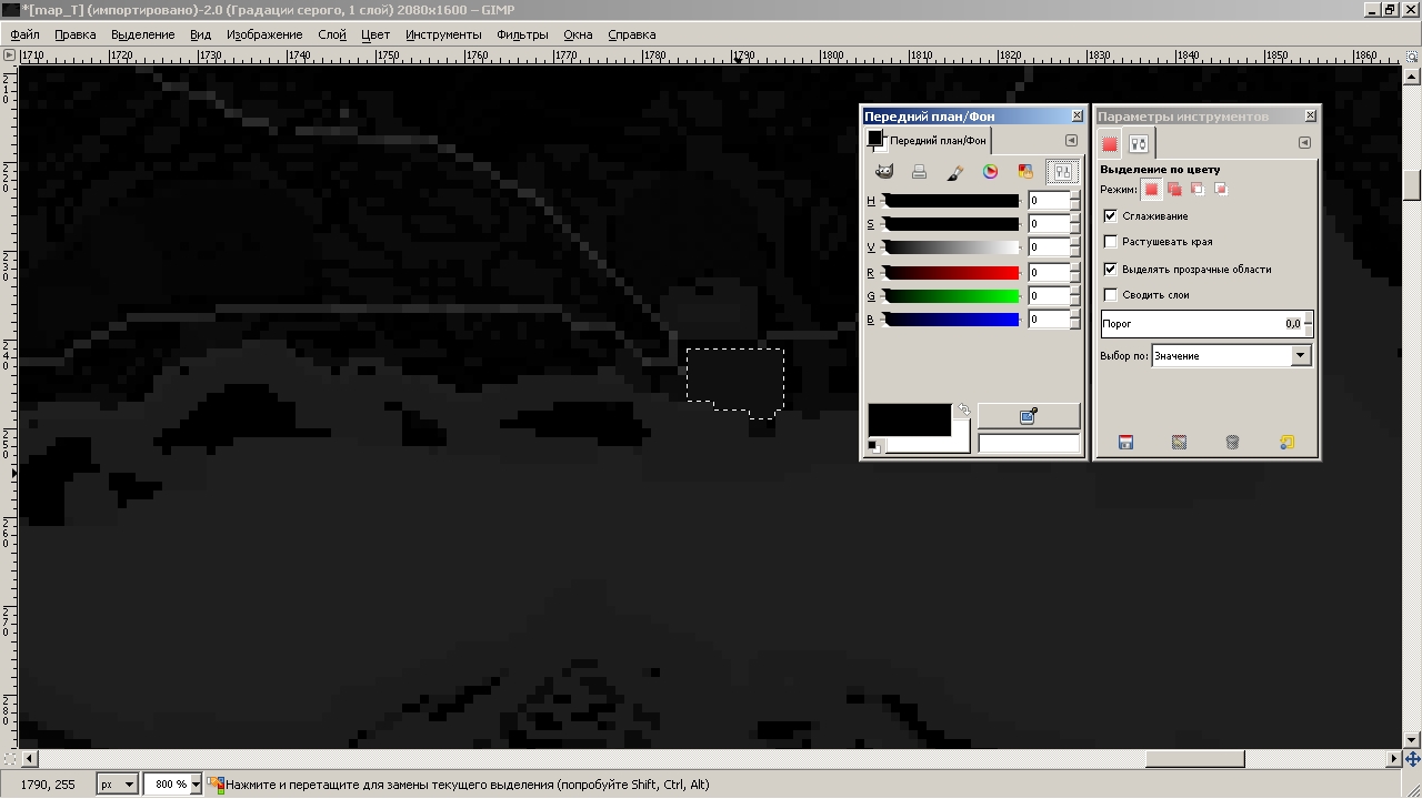 Я, экспериментируя с map_t, все цвета лотов ландшафта распределял по слоям именно копируя "выделением по цвету" с порогом "0". |