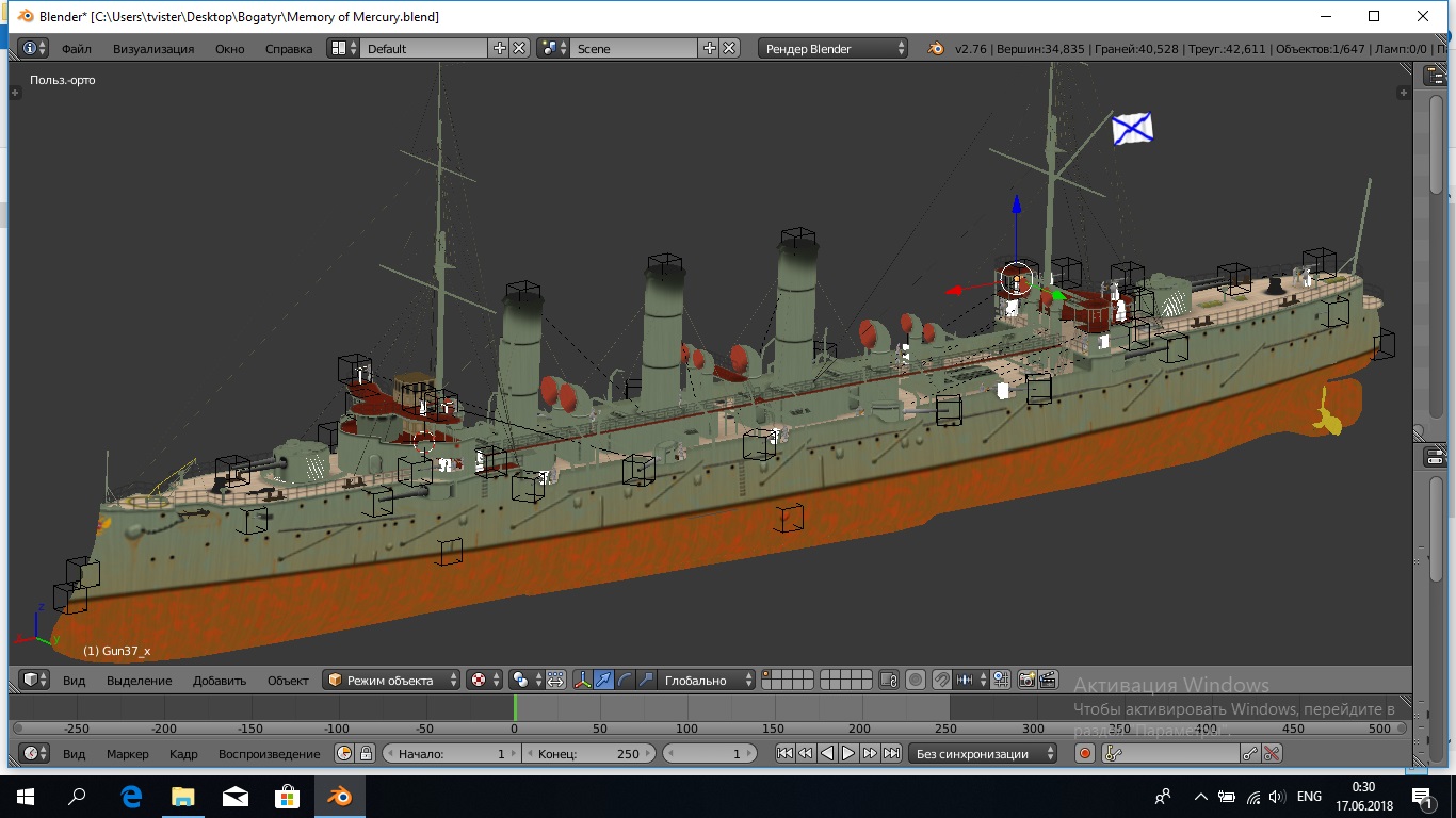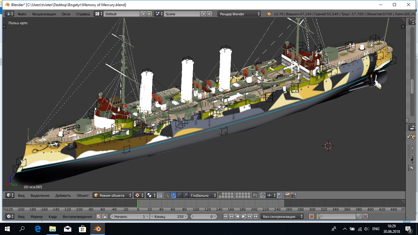 Спасибо, Максим я сделал заново, воспользовавшись дефолтным скином, используя игровую модель как шаблон. "Богатырям" добавил шлюпочное вооружение и прожектора, нулевой лод готов! Даже больше чем нулевой, поскольку модели вооружения полностью завершены. Плывем дальше... |