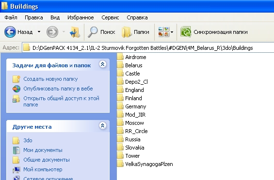 На скриншотах показано, как нужные папки лежат у меня. Папка с МОДами называется #DGEN. Сравните содержимое папок airfield и Buildings: все ли на месте?