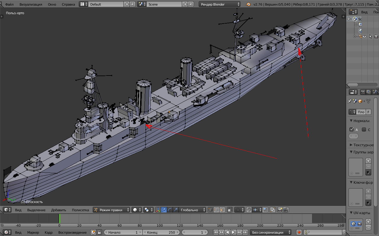 Всем доброго времени суток. Удалось обмануть блендер и развернуть корпус по оси X. Правда при этом потерял скины, но все равно их надо было переделывать. Потихоньку правлю модель, удаляю лишние полигоны, доделываю мелкие детали и тд. и тп.