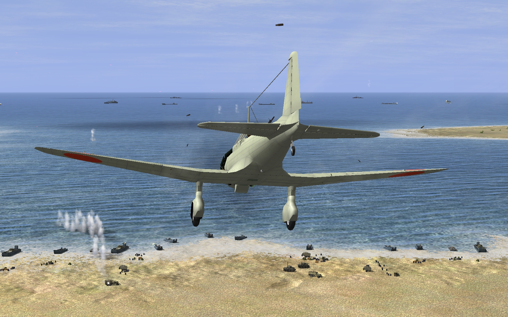 Атака началась. Восьмерка Ки-51 штурмовала американский десант, очень хорошо прикрытый истребителями 5-й ВА и корабельными зенитками. Небольшие бомбы "Сонь" конечно не смогли остановить 1-ю дивизию морской пехоты, а вот потери не заставили себя ждать.
