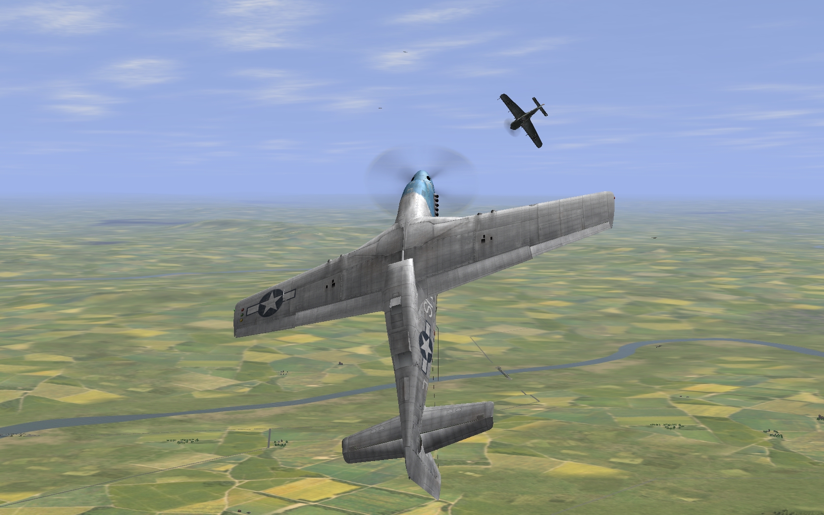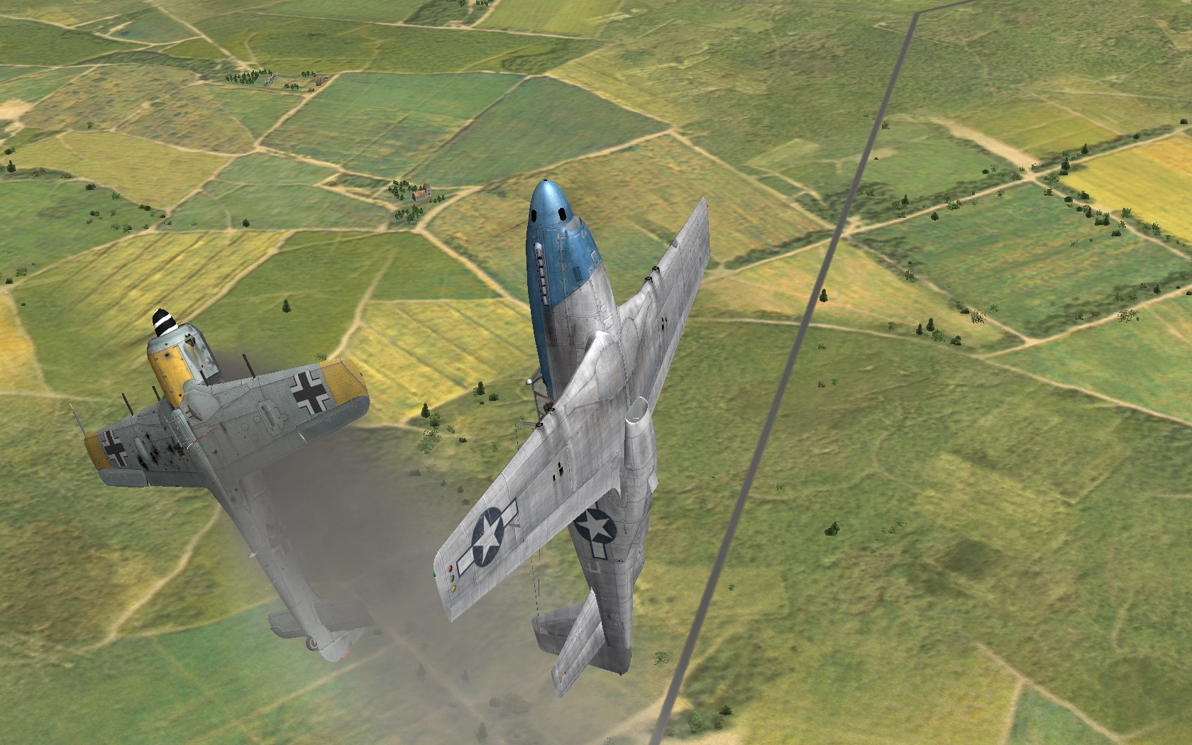 Очень много времени уходит на то, чтобы собрать-подобрать нужные скины, а некоторые приходится еще и дорабатывать напильником (пейнтом ) но у меня наверное ни одна американская группа не останется в дефолтном скине, ни истребительная, ни бомбардировочная. А ведь со временем придется еще и добавлять скины для новых модификаций Р-38, Р-47 и Р-51, а еще постепенно переводить их с камуфлированного на неокрашенный вариант... Короче скинов будет дохринища, но я надеюсь эту тему закрыть уже окончательно. И немцы конечно само собой - они у меня будут использовать скины Вотана, тут других вариантов не вижу.Так вот, возвращаясь к 352-й группе, сейчас отдельной кампании конкретно про эту группу еще нет, но когда запилю кампанию в целом, добавить ее будет несложно, работы на час может. А в качестве статиста 352-я уже летает, и синеносые скины (конечно же от VPmedia) используются полным ходом. Извольте-с: