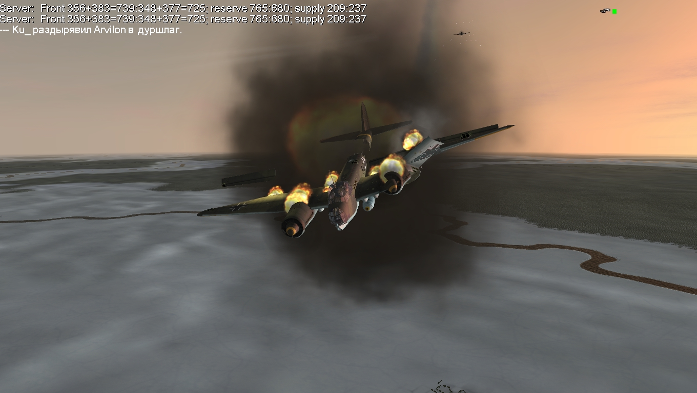 Но на треке этой ракеты нет. О пуске свидетельствуют зеленые трассеры шкасов, совмещенных с пуском ракет, и взрыв бомбардировщика.