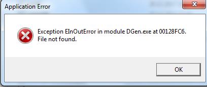 Скачала DGen пак хотела запустить планировщик динамических миссий DGen.exe. Тут же вылетает ошибка. Не подскажете что можно сделать?