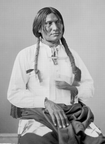 Уже в поисках начинаю вспоминать, что подлинной фотографии этого чувака нет. И у меня её и быть не должно. Да, и прославился он благодаря этой самой резне. В отличие от Сидящего Быка. Его фото я тут публиковал. А, вот папаша его Длинные Рога слыл на пол- Америки. Этот командовал всеми Лакота. К нему сбегались все вожди для совета, как быть. Авторитетный был чувак. |